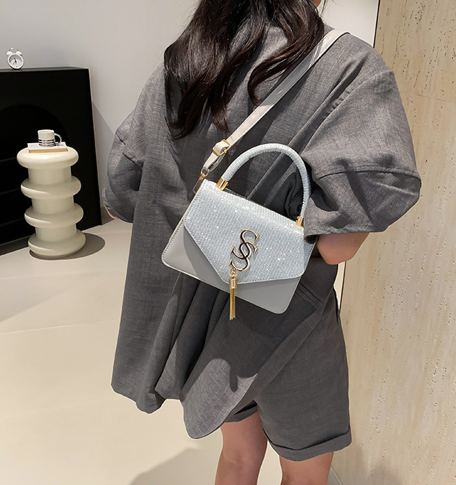 Refined, modern, and effortlessly chic — this structured mini handbag is designed to elevate any outfit. Featuring a shimmering crystal-embellished flap and sleek matte body, it blends subtle glamour with timeless sophistication.The structured silhouette keeps its shape beautifully, while the gold-tone hardware and statement clasp add a luxurious finish. Carry it by the top handle for a polished look or wear it crossbody with the detachable strap for hands-free elegance.Perfect for evening events, special occasions, or adding a touch of sparkle to your everyday style.